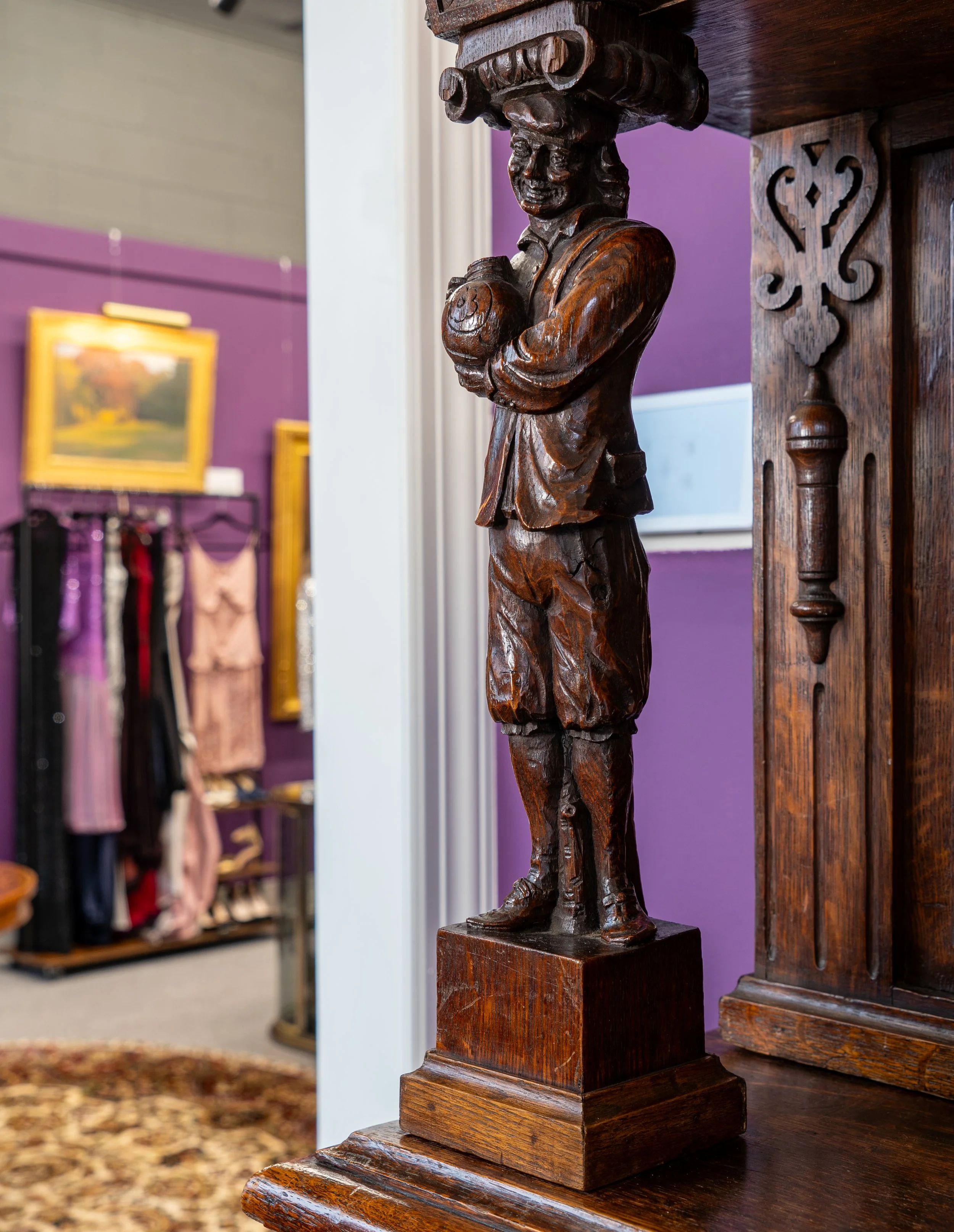 Highlights in furniture span centuries and styles, from the refined lines of Danish Modern by Finn Juhl, Hans Wegner, and Svend Ellekaer to the craftsmanship of Empire, Antique English, and 18th century Dutch pieces.