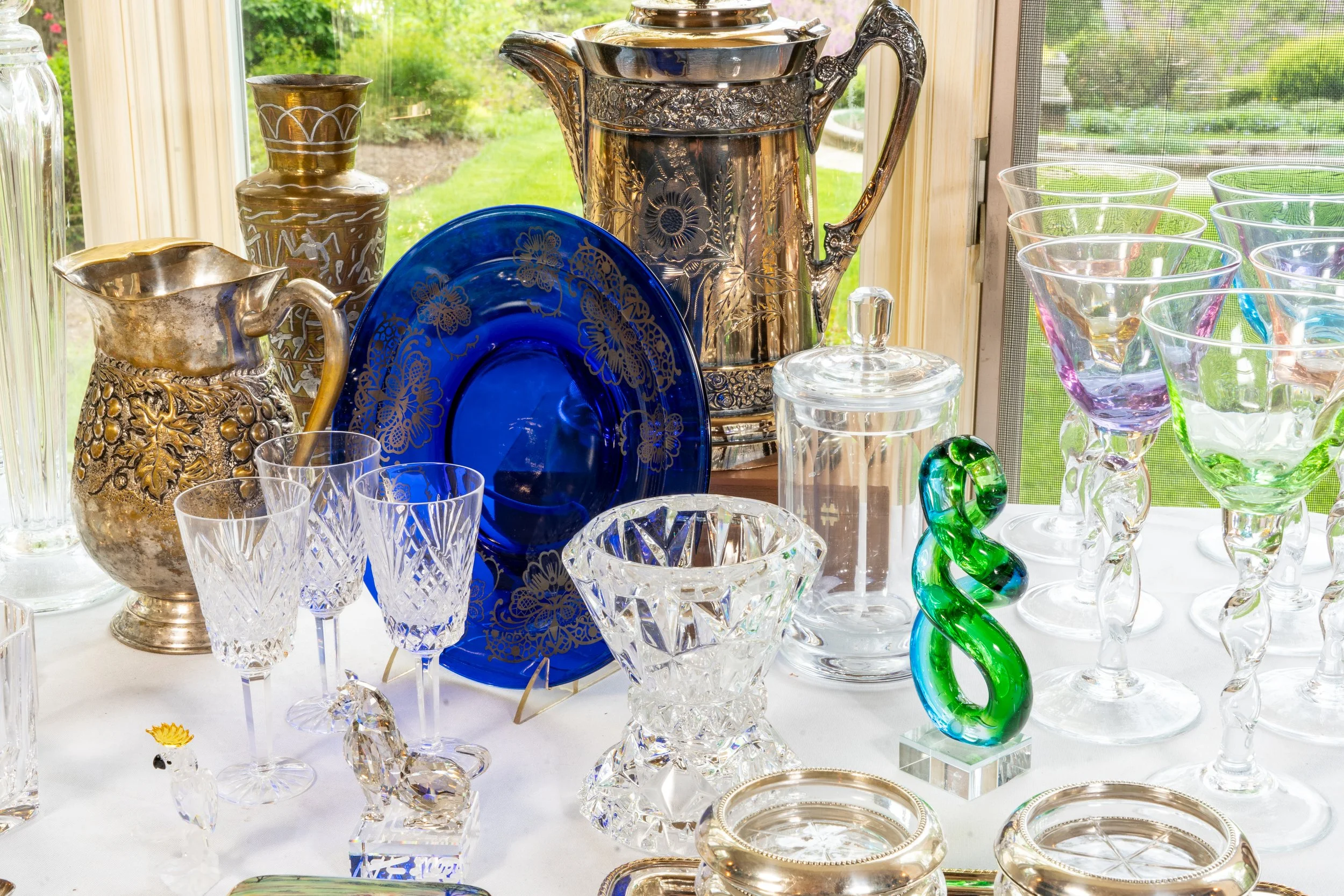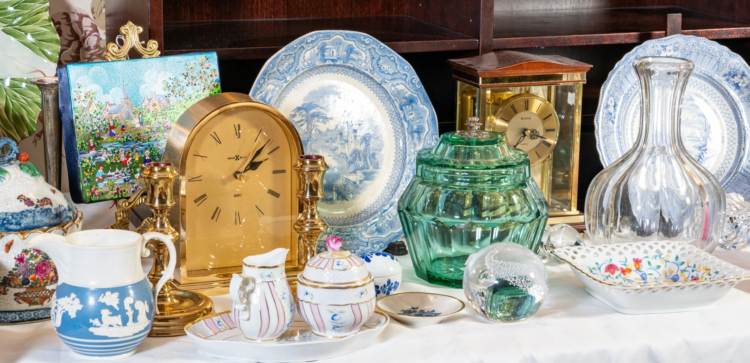 Highlights include fine and designer jewelry, Herend, Ginori, Limoges, Boehm, and Lladro porcelain, Baccarat, Murano, and Waterford glassware, Tiffany and Wedgwood china, and sealed packages of Italian and French linens.
