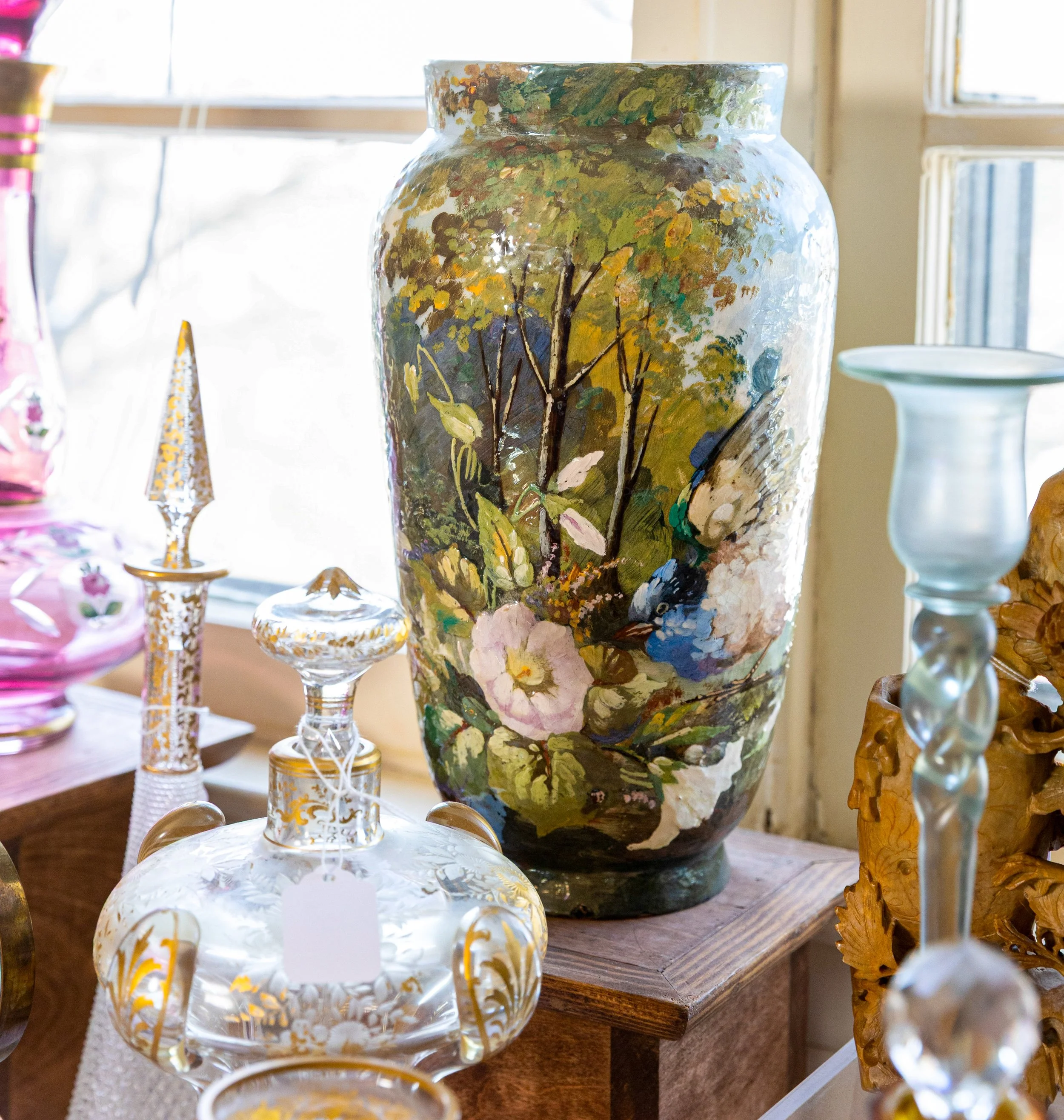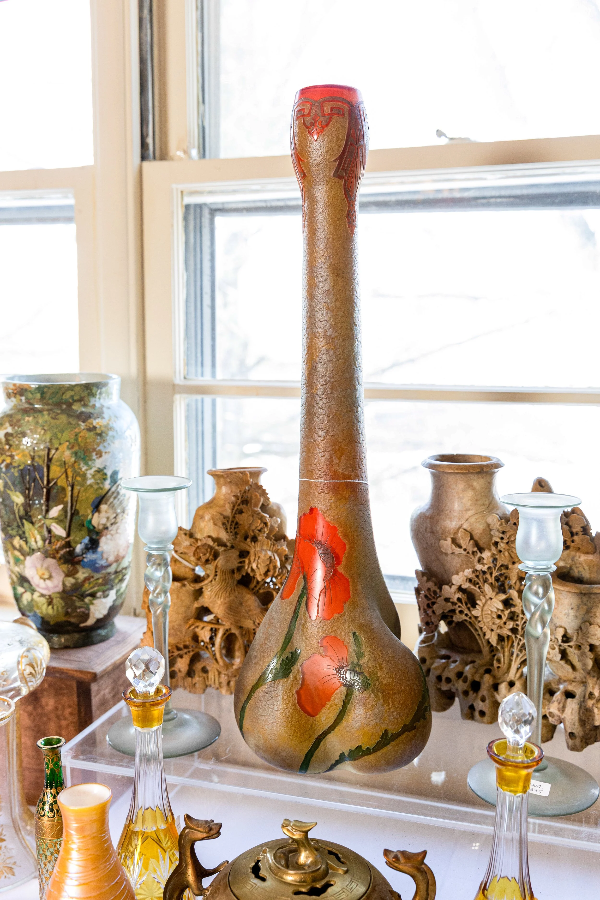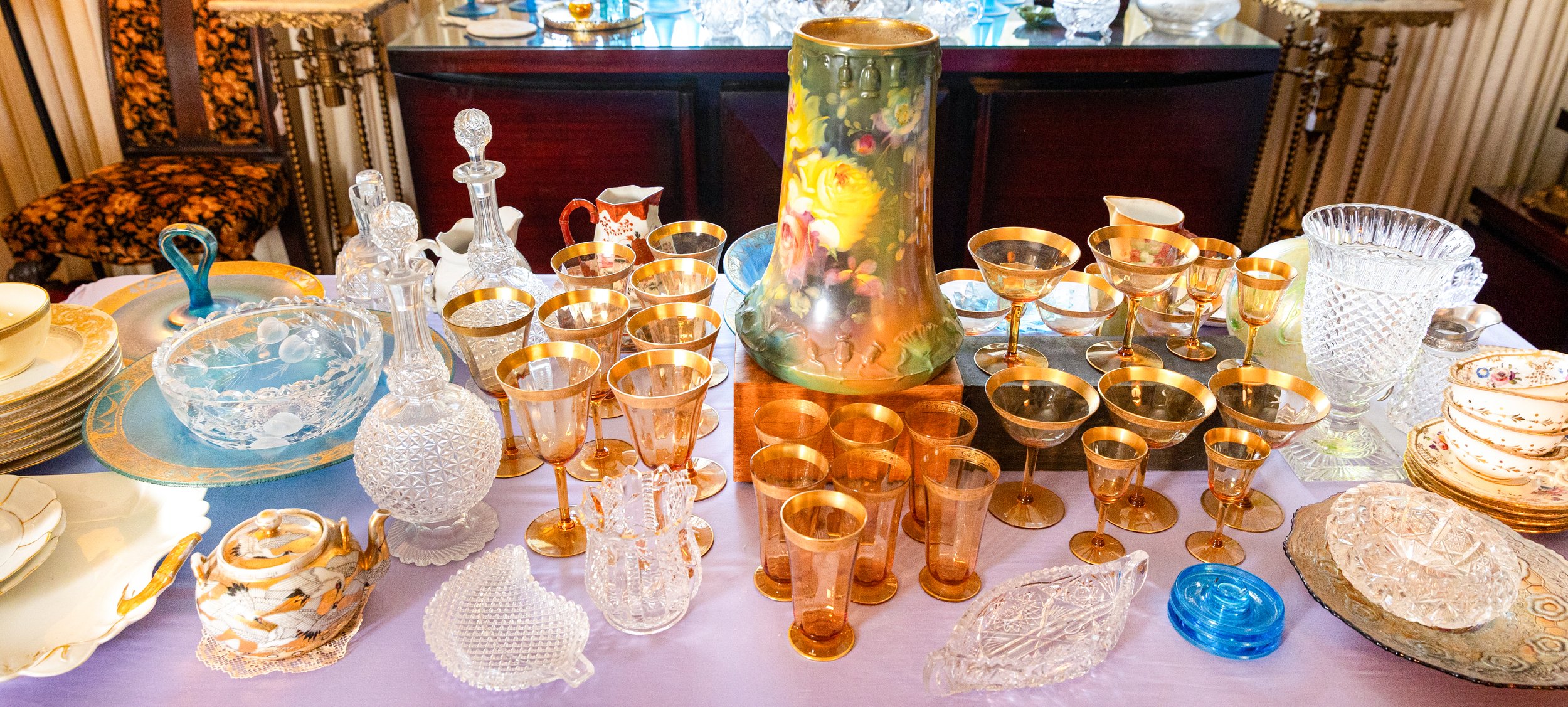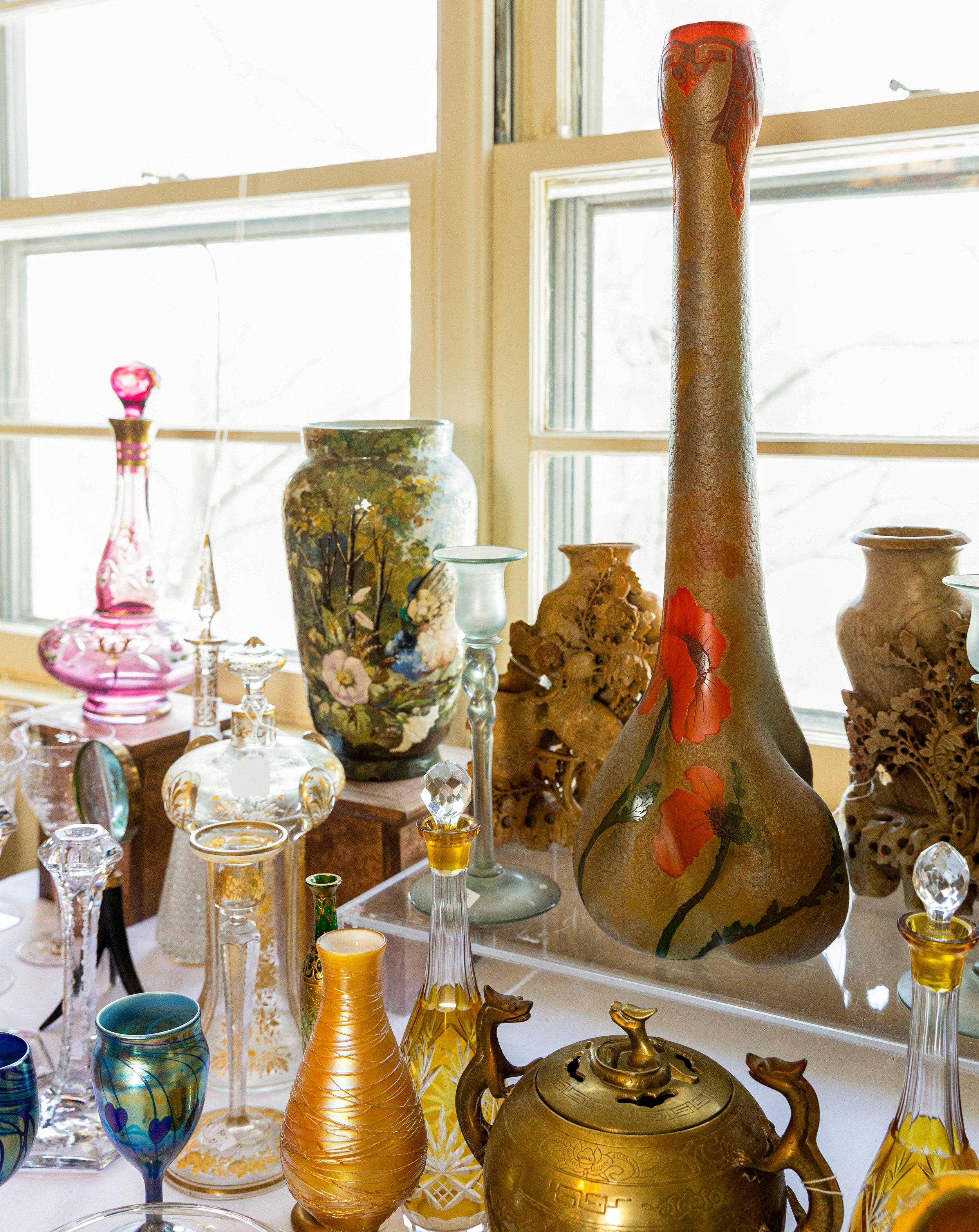 Indulge in art glass and porcelain by Galle, D’Argental, Victorian artisans, Satava, Murano, and Herend, along with Asian furniture and porcelain pieces of exceptional quality.