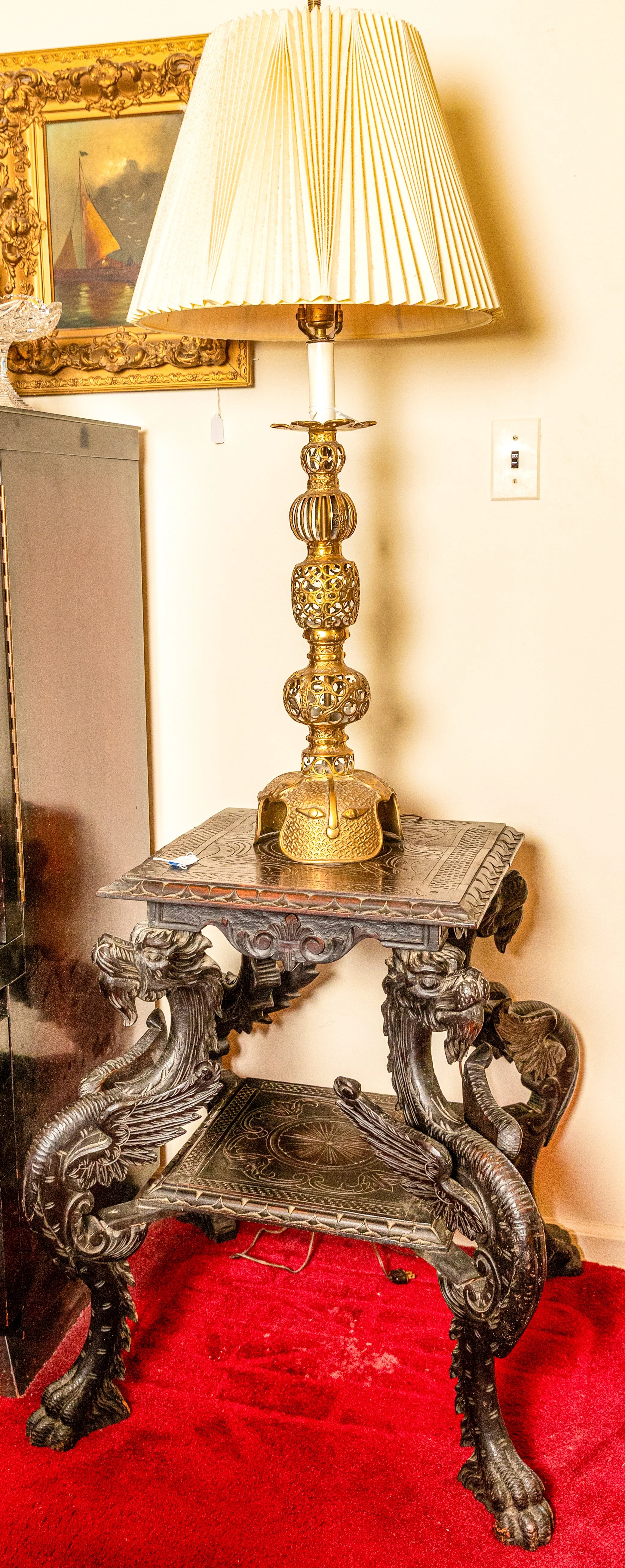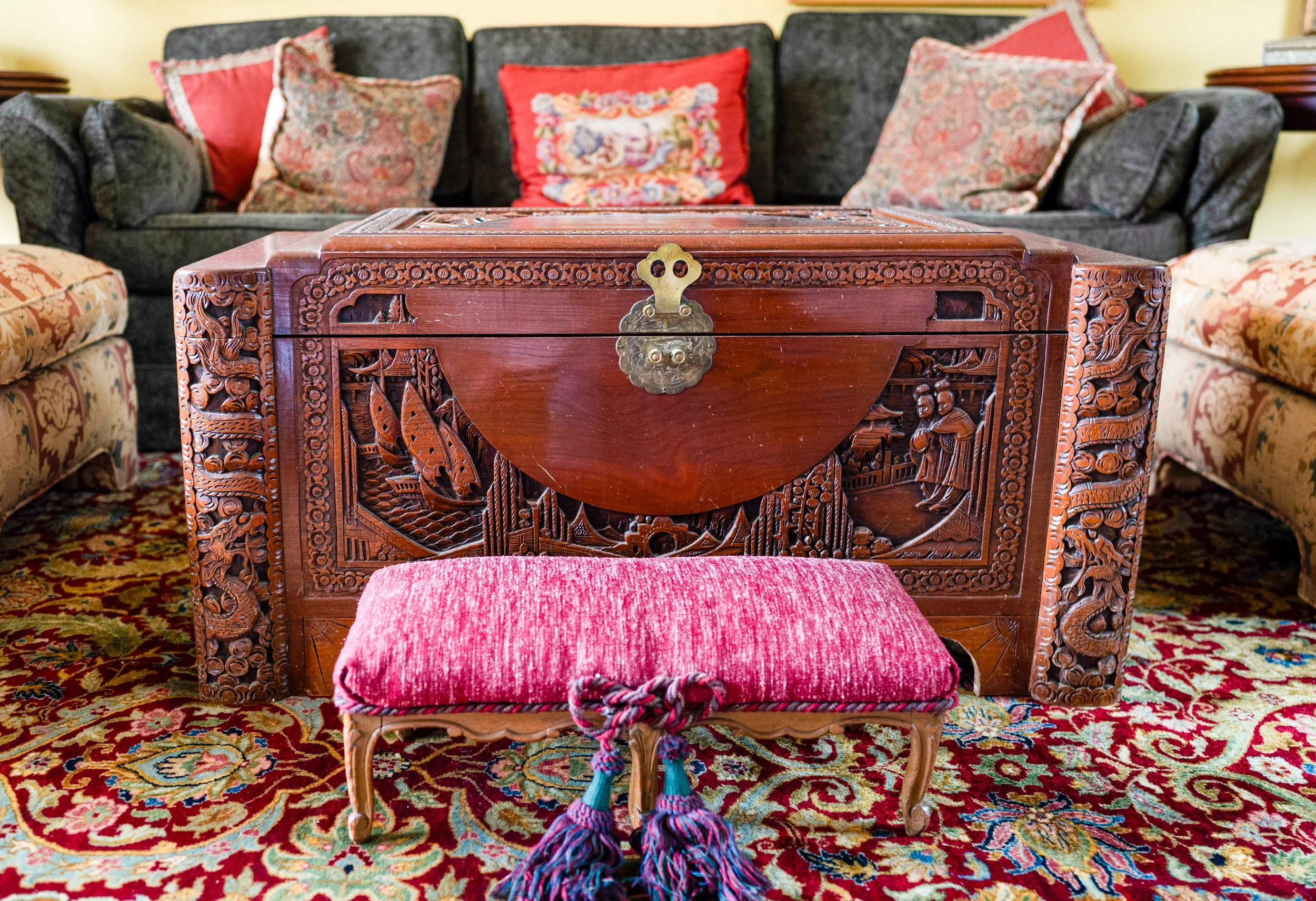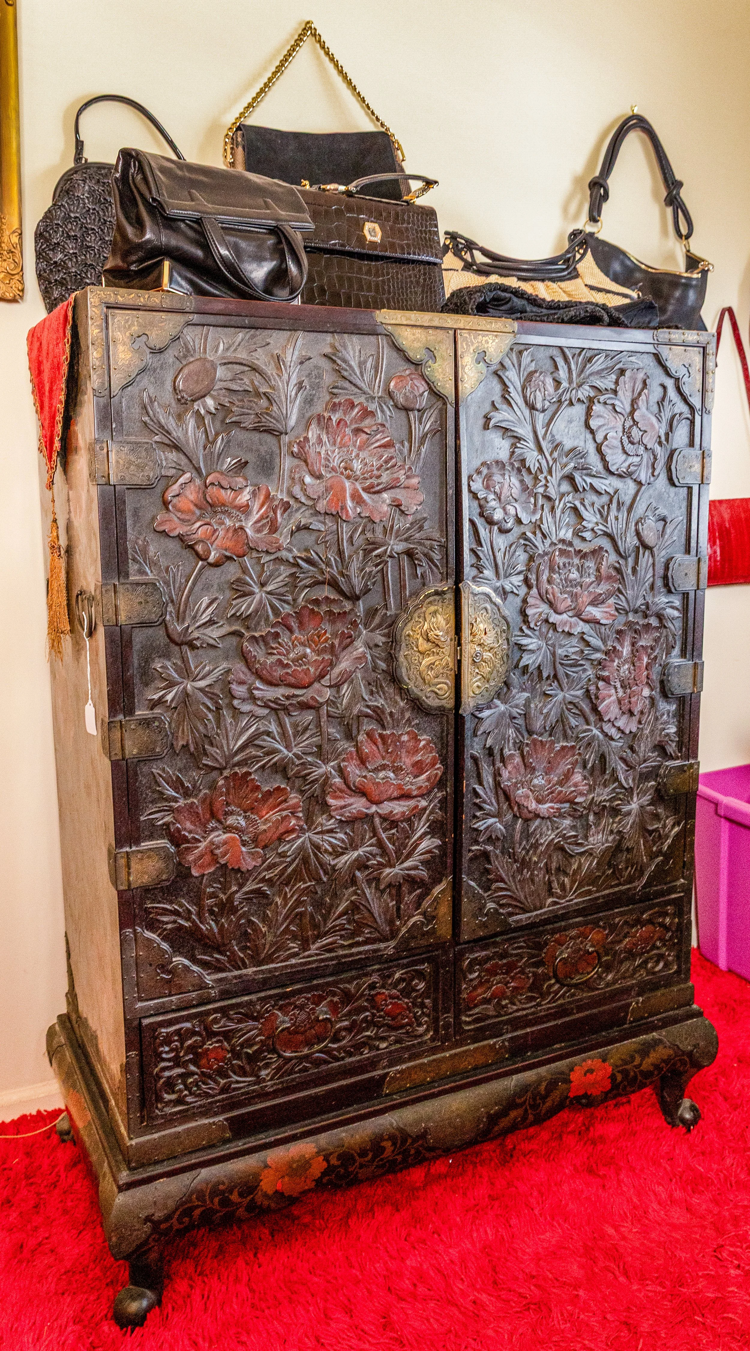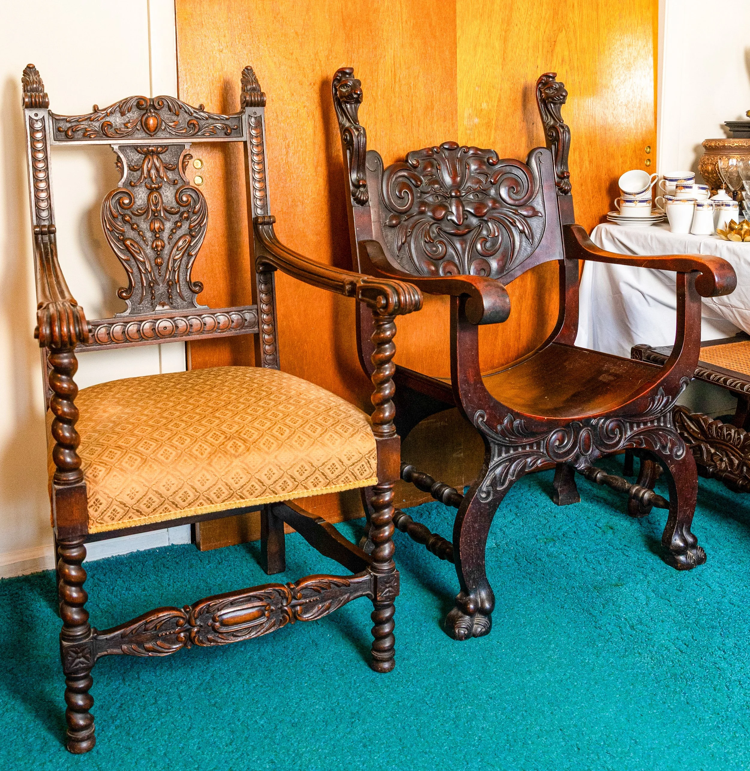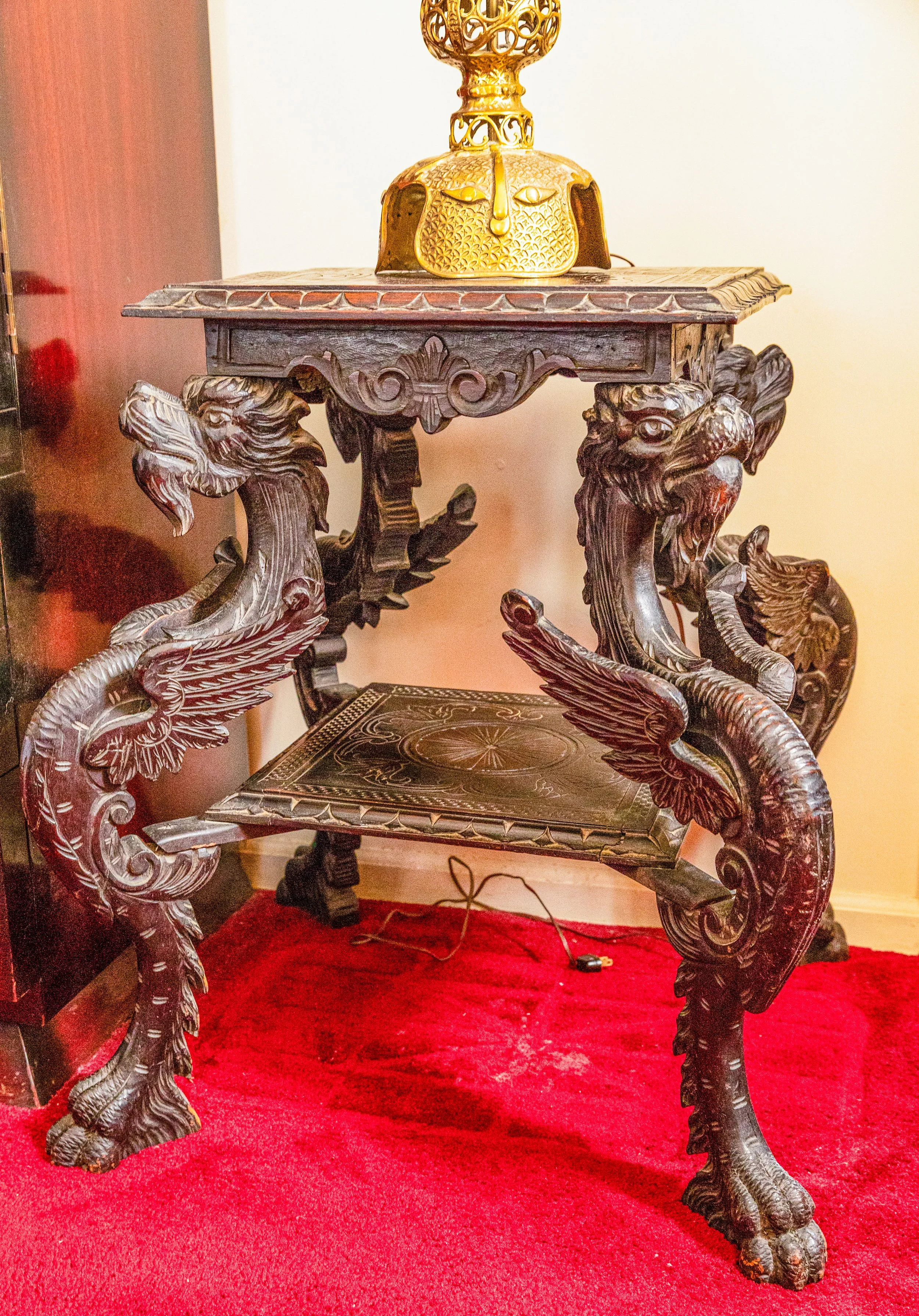 Other featured treasures include hand-knotted rugs, an Edison Opera phonograph, a Singer portable sewing machine, and even a full-size carousel horse.