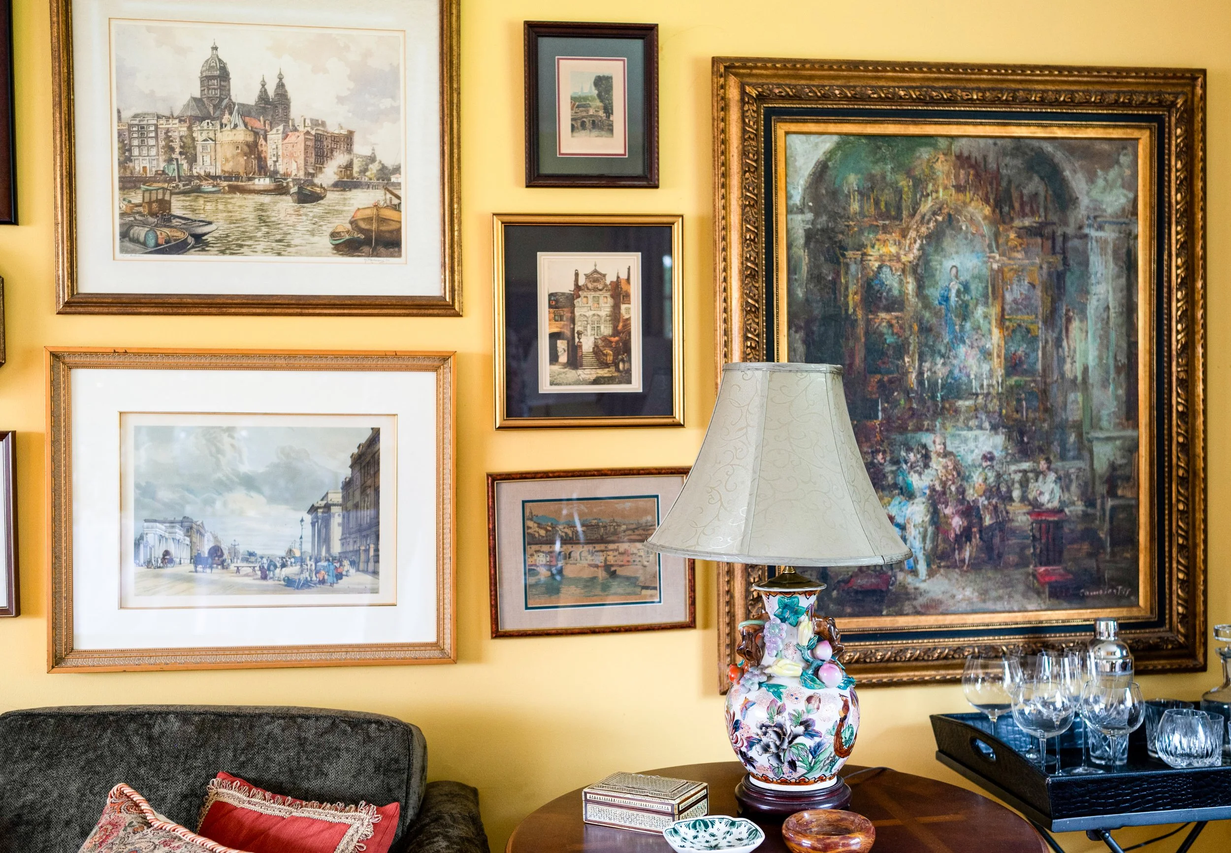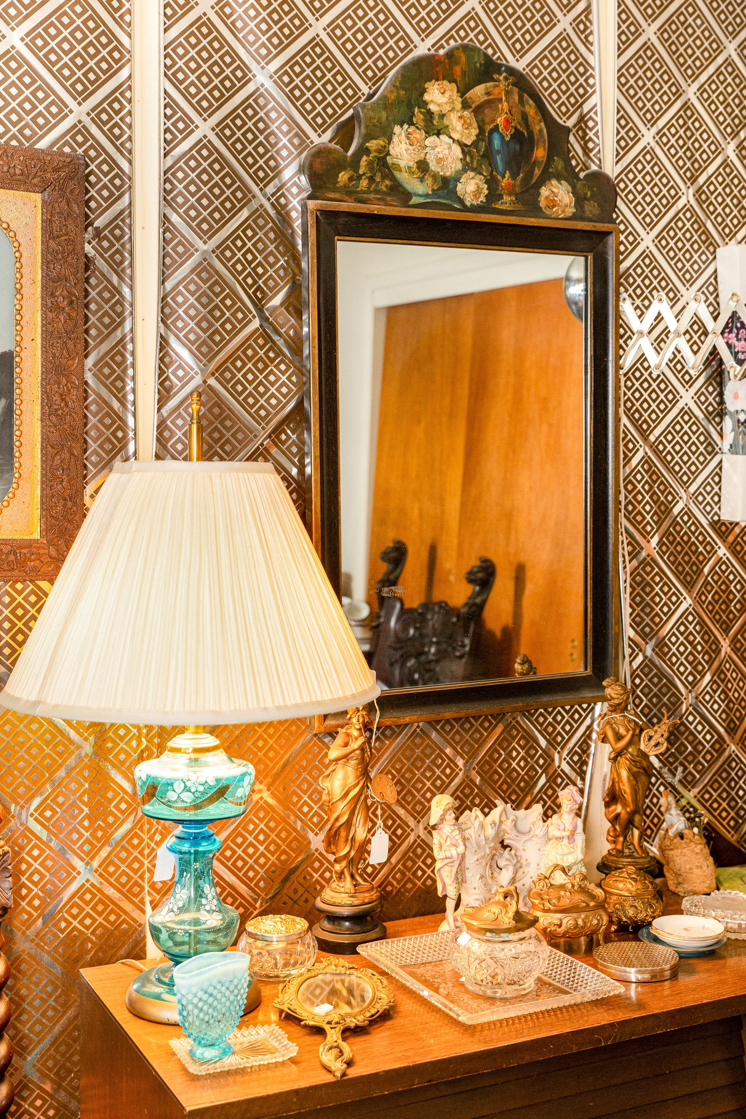 Antique and vintage lighting throughout the house