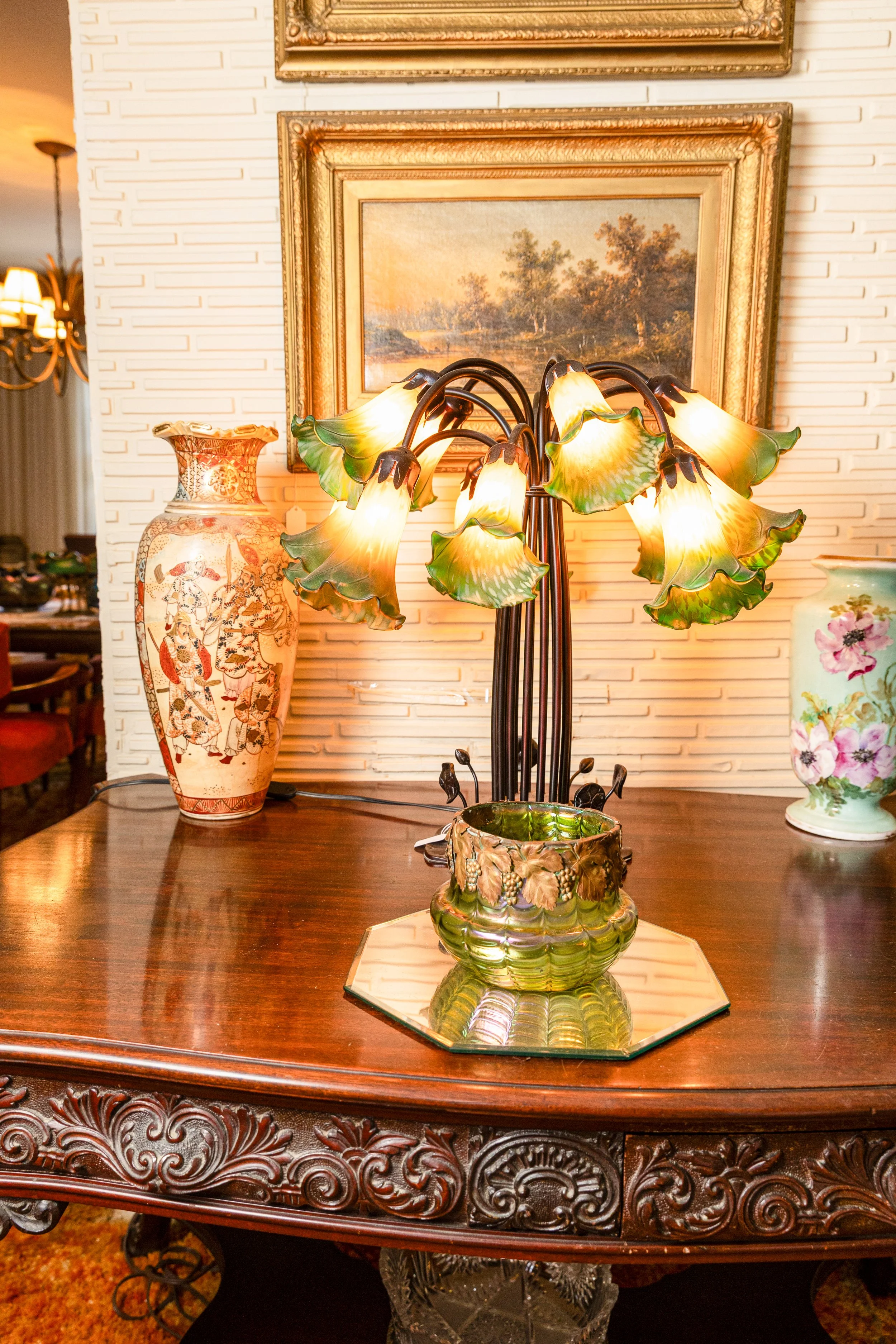 Marvel at sterling silver from Tiffany, Gorham, and more, as well as lighting that spans Murano glass, reverse-painted artistry, mid-century modern design, and Koch & Lowy craftsmanship.