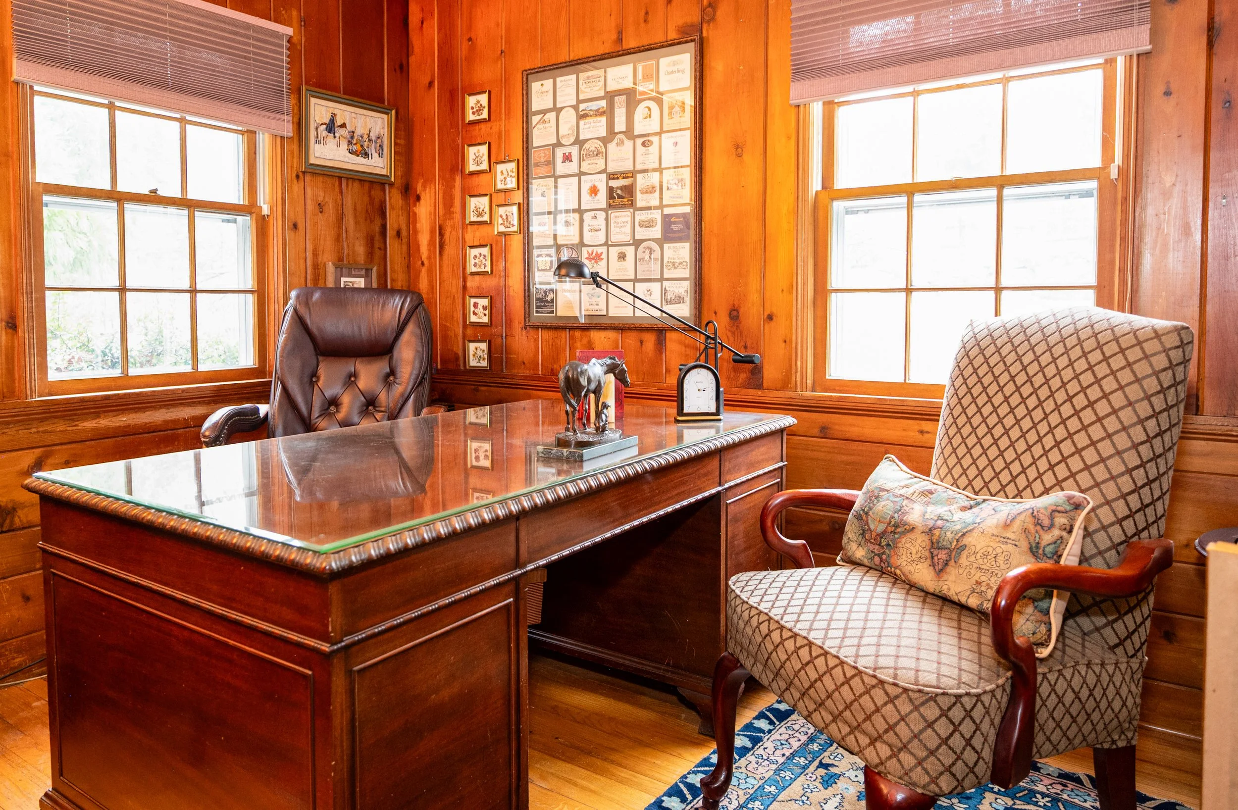 Explore a curated selection of antique and designer furniture, including pieces from Restoration Hardware and Pottery Barn. Art enthusiasts will delight in dozens of original works by listed artists, as well as two Sullivan and Adler original balusters from the historic Chicago Stock Exchange.