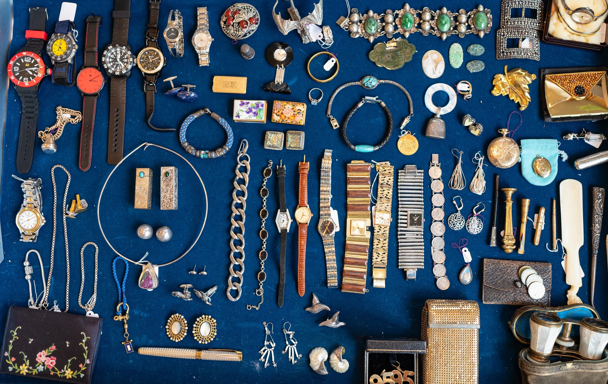 From bold designer statements to timeless classics, explore a curated assortment of fine and fashion jewelry, watches, and purses in 14k, 18k, sterling silver, and diamonds. This diverse collection features everything from iconic designer pieces from Gucci, Bottega Veneta, Loeffler Randall & Kate Spade NY to distinctive artisan craftsmanship from Tiffany & Co., David Yurman, Bulgari, Chopard, Town & Country, Omega. Highlights include 18k gold & diamonds Bvlgari Lady’s watch, an 18k gold and diamond Omega Lady’s watch, and pieces by Tiffany & Co., David Yurman, Georg Jensen, Effy, Konstantino, and more—alongside Italian, Taxco, and Native American silver designs. A radiant offering for collectors, stylists, and those who love to shine.