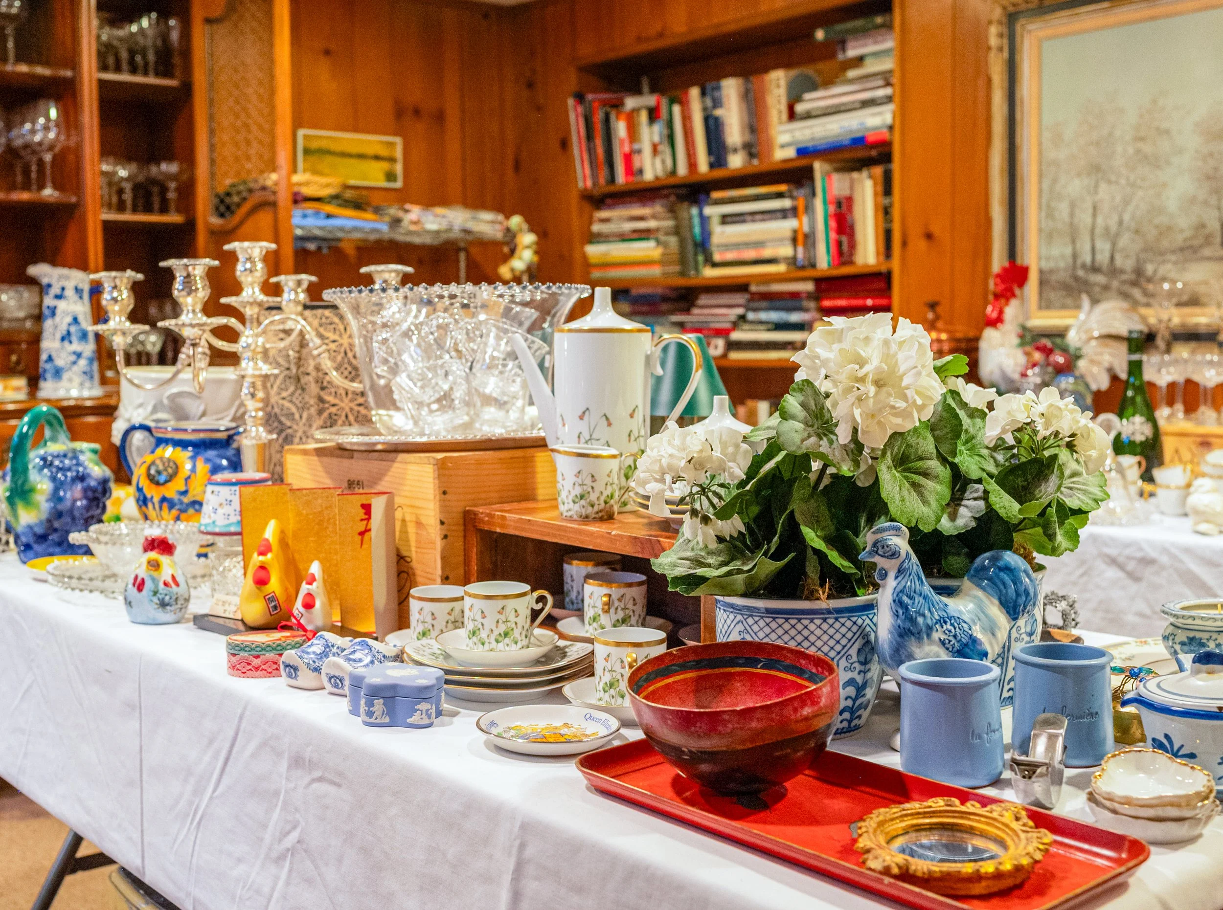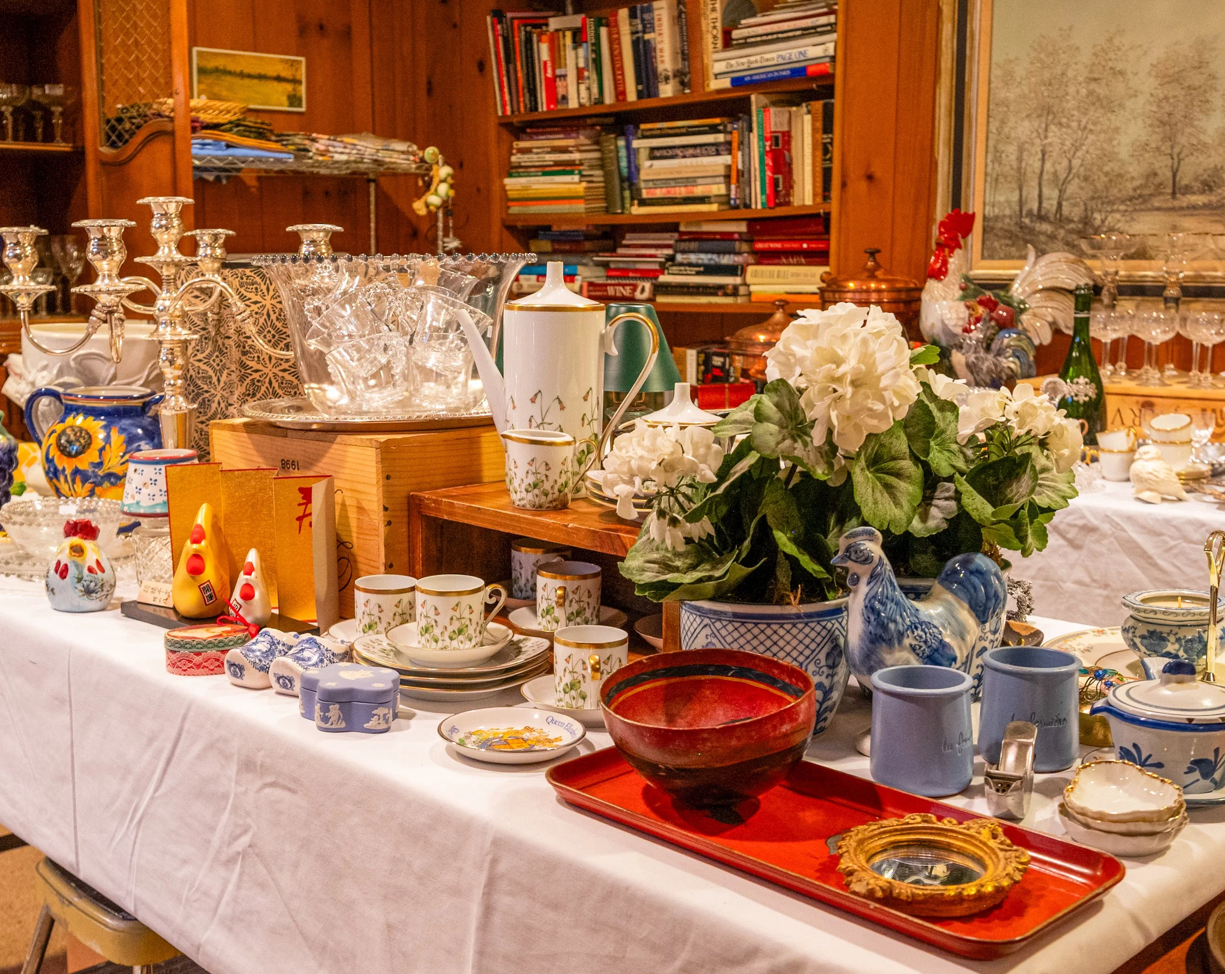 Highlights also include dozens of geodes and mineral specimens, handknotted rugs and tapestries, fine jewelry, Easton Press books, Danish and American pottery, china, and much more.