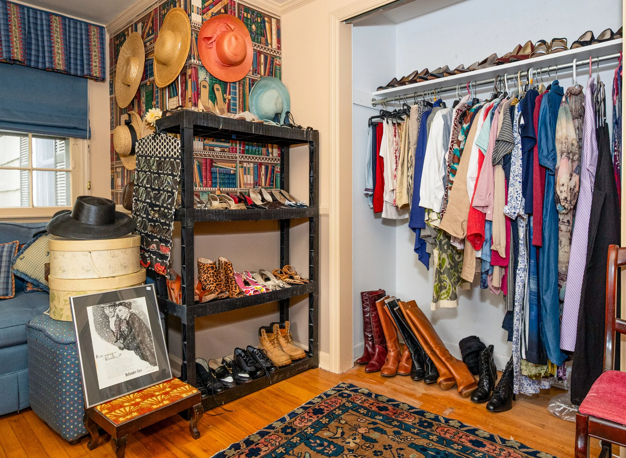 The large collection of fashion items is a "fashion time capsule" ranging from pieces from the 60s through the 90s. A real Fashion Time Capsule, ranging from the ‘60s to the ‘90s, with a strong emphasis on 80s/’90s clothing, shoes & accessories, including some real collectible items!
