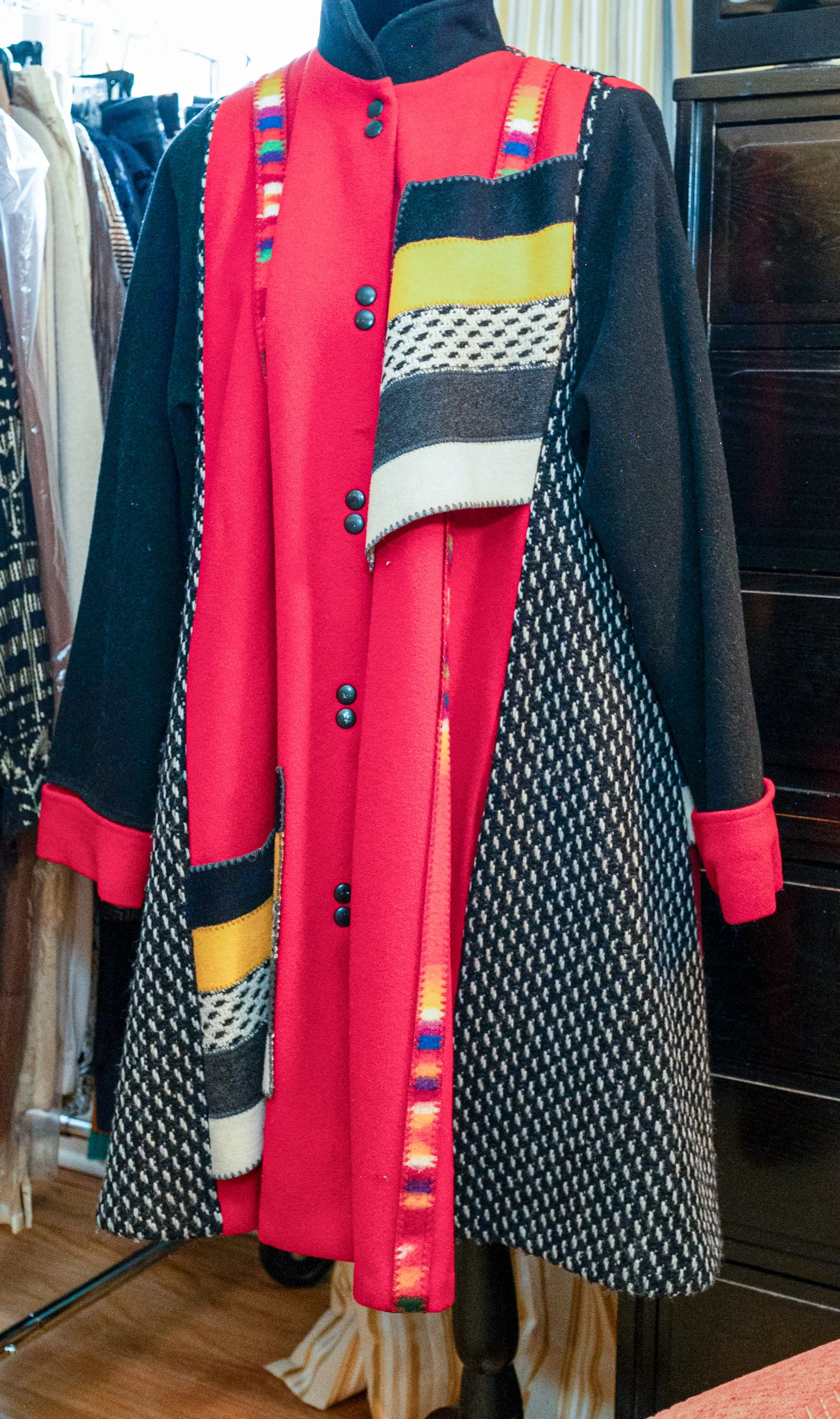 Large selection of imported hand-knit sweaters-Silk scarves by Christian Dior, Gucci, Loewe etc.-Custom evening wear (gowns, suits, opera coats, etc)